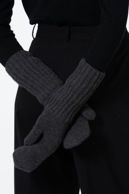 Dinadi: Merino Handknit Long Mittens Charcoal