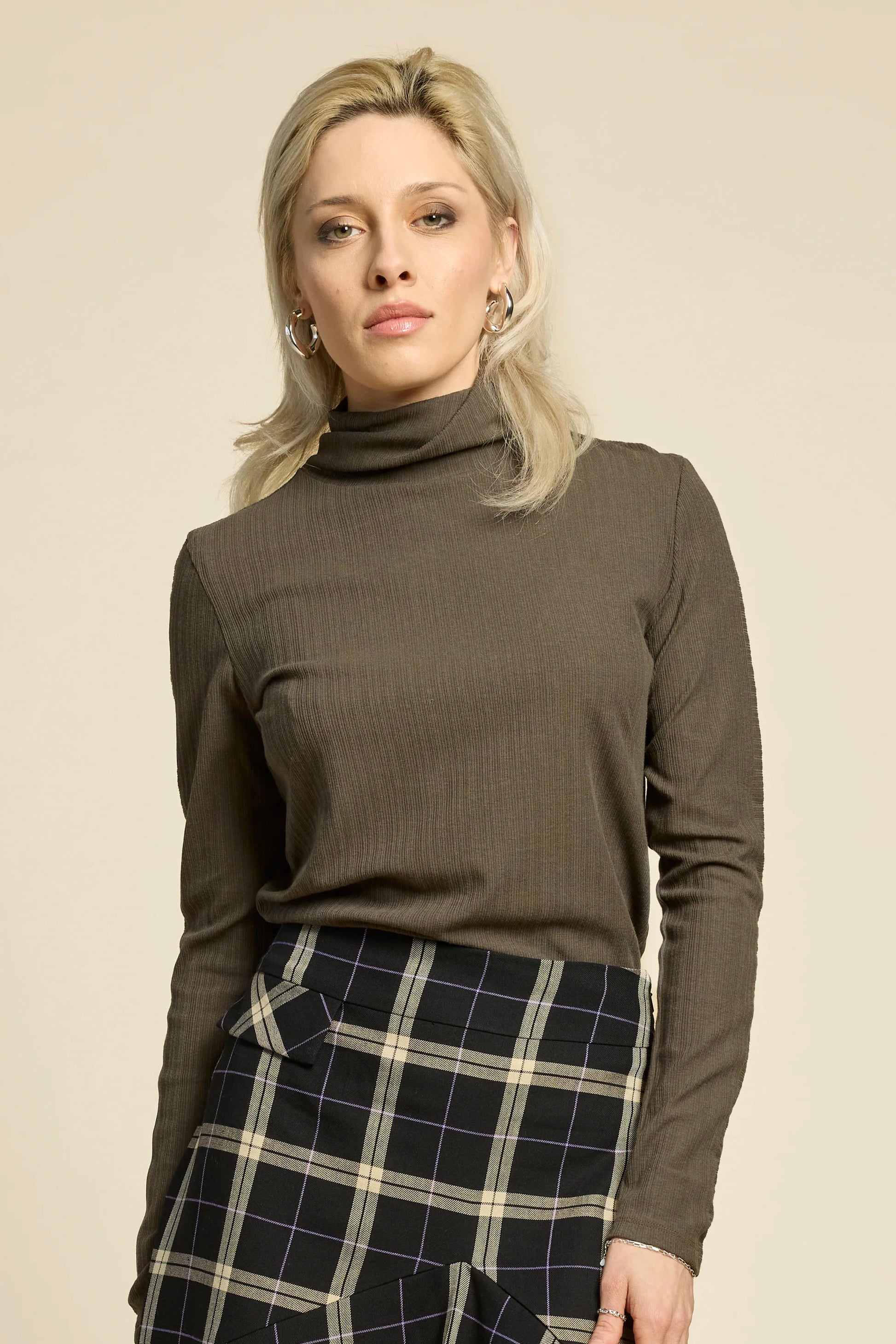 The perfect turtleneck. Wear it alone or slip it under a dress or another of your favorite tops to change the look. We love its textured striped fabric in tone on tone and its band that creates a play of lines on the sleeve.