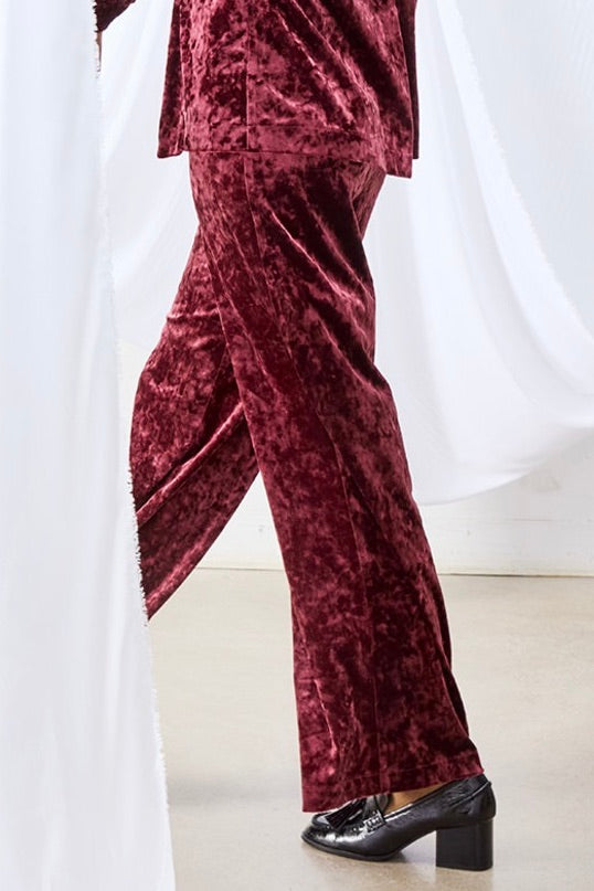 A stunning occasion pant in beautiful rosewood crushed velvet. Pairs perfectly with the Aveline blazer.
