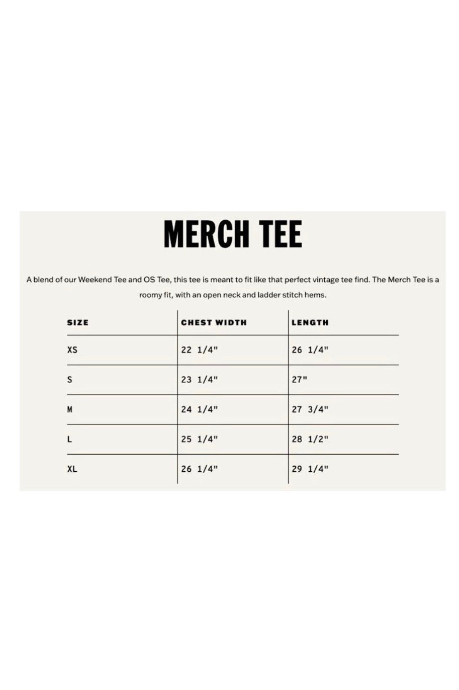 - The Merch Tee is an oversized fit, designed in midweight cotton to achieve the perfect drape.