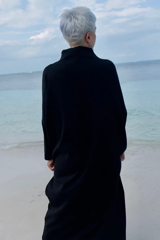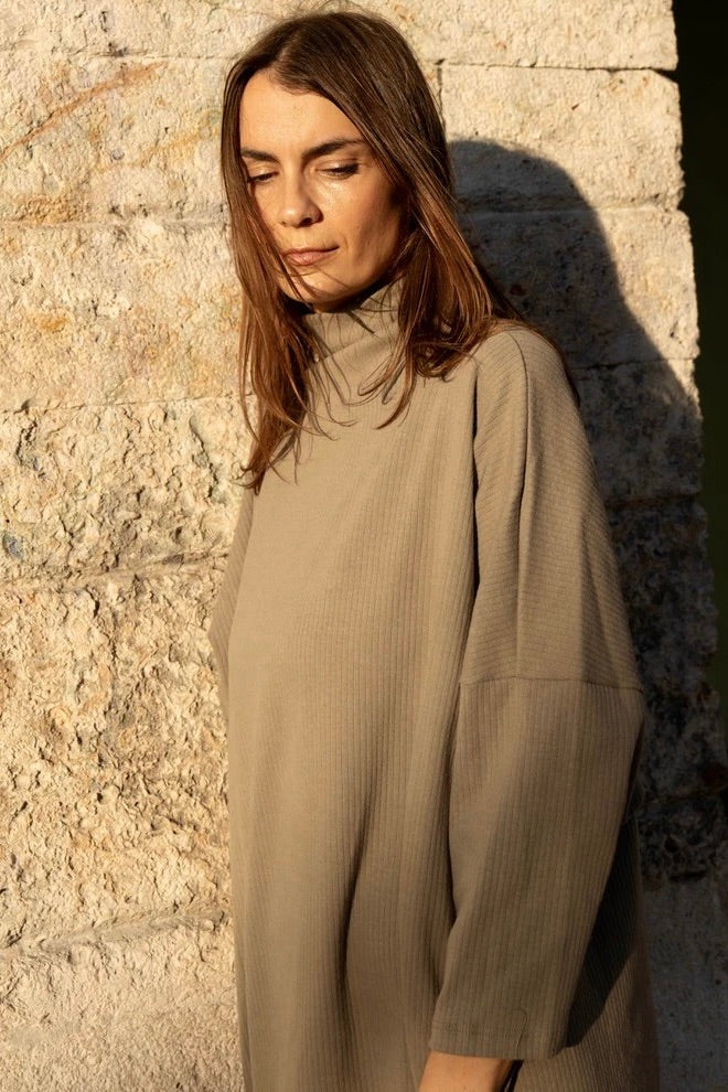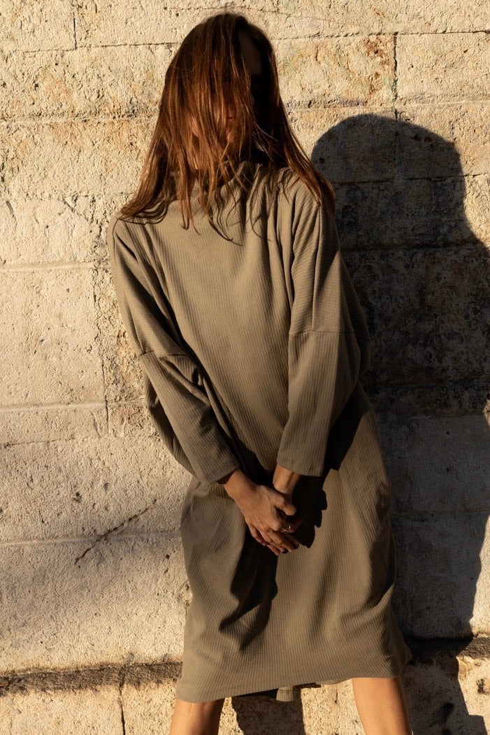 A cozy and chic winter essential in a conscious, cotton-spandex blend. This truly one-size ribbed dress offers universal appeal and effortless style, designed to be a versatile cornerstone of your wardrobe.
