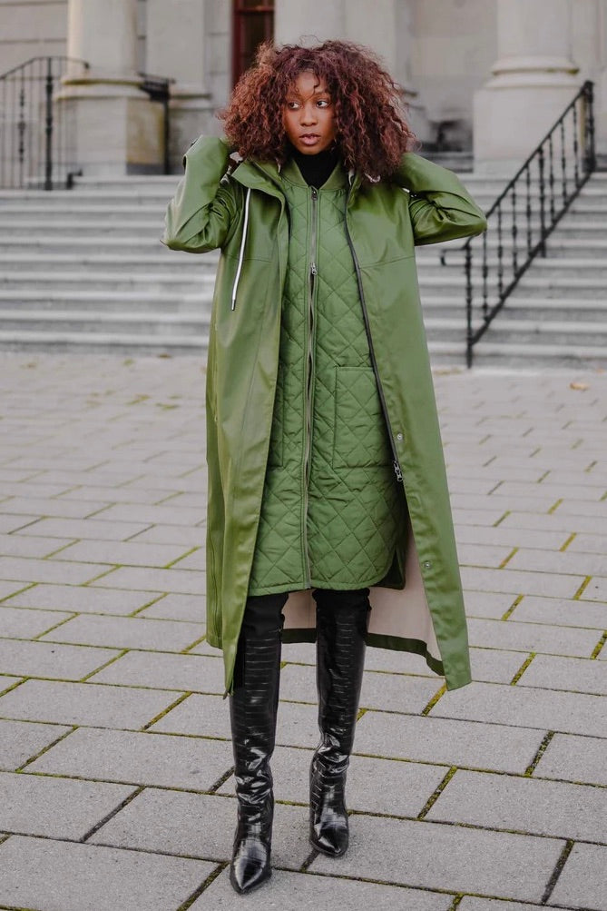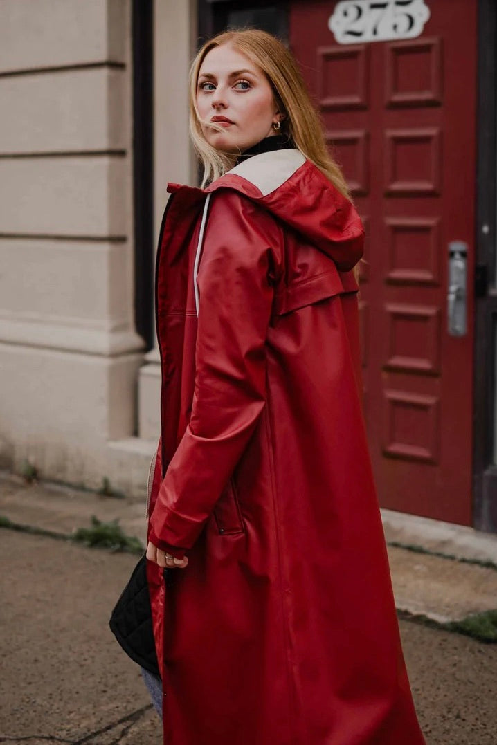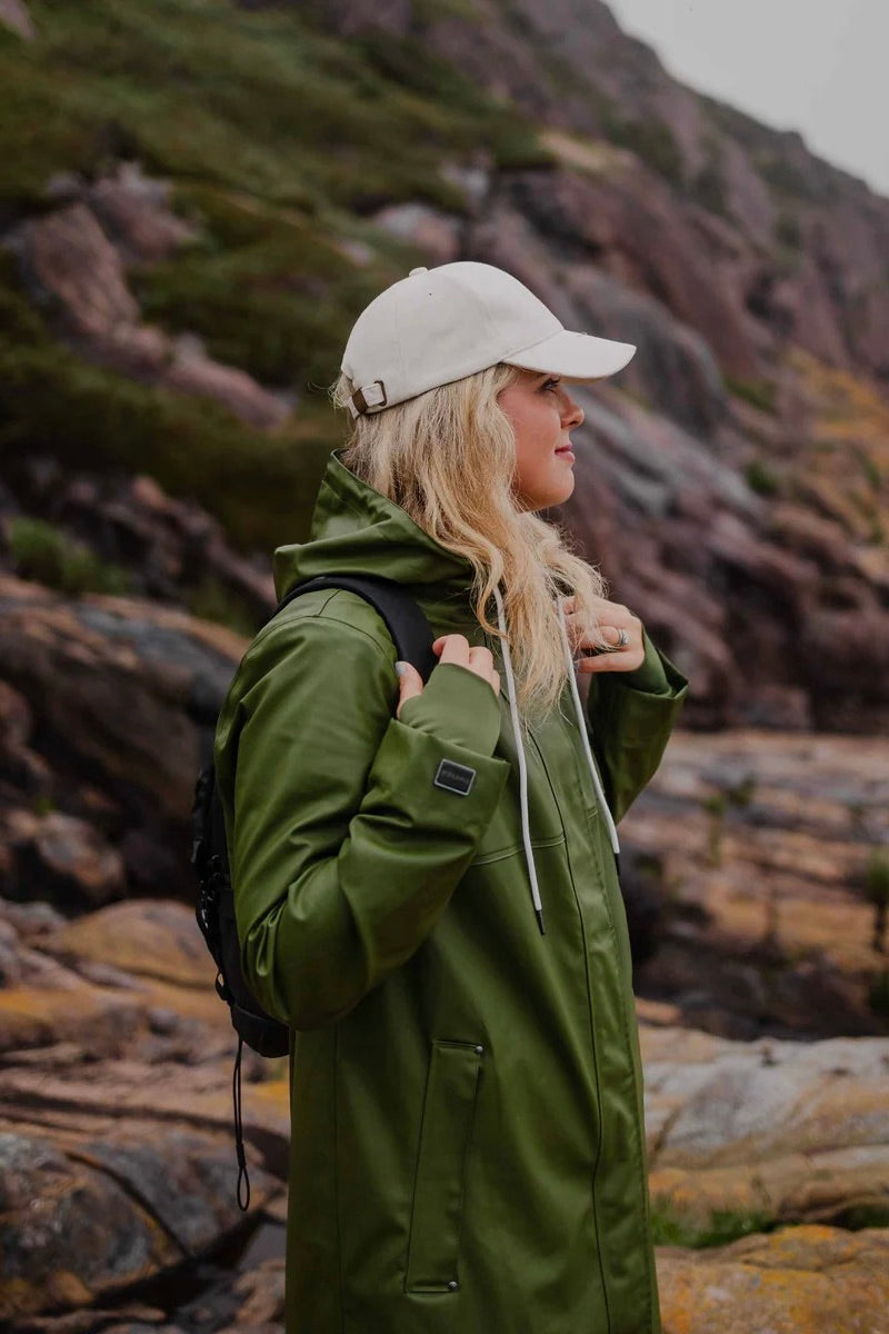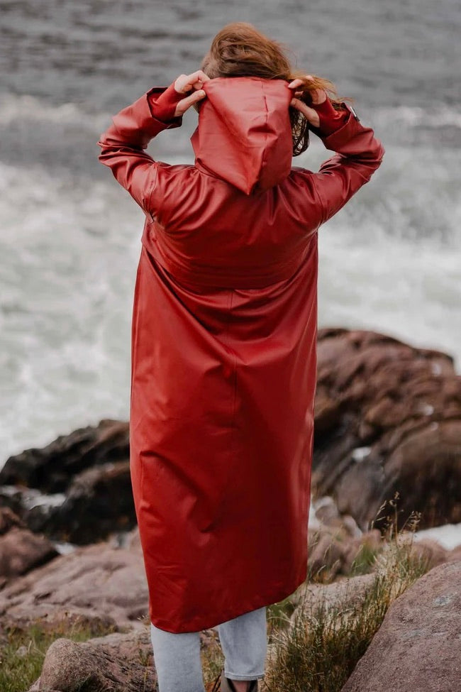 City chic meets outdoor practicality! A shorter version of the full-length Mernini raincoat, The Petite offers an A-line silhouette with ample room for outfit layering. This traditional, unlined design incorporates modern features such as water-resistant wrist warmers and a convenient magnetic front closure. Meticulously crafted, the mernini raincoat is built to withstand the unrelenting power of the North Atlantic wind and rain, making it essential for every strong woman.