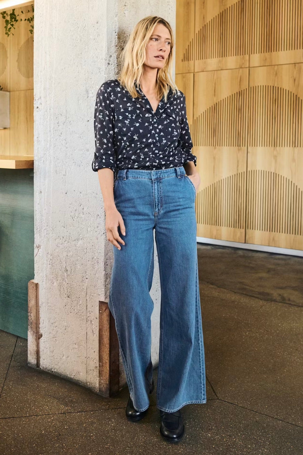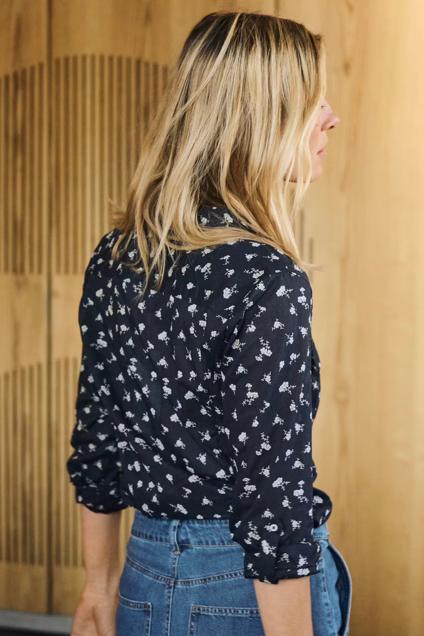 This lightweight cotton poplin shirt features a relaxed fit and subtle floral print for a feminine touch. With chest pockets and button fastening, the sleeves can be rolled up for a more casual feel. Style it with jeans or under a blazer.