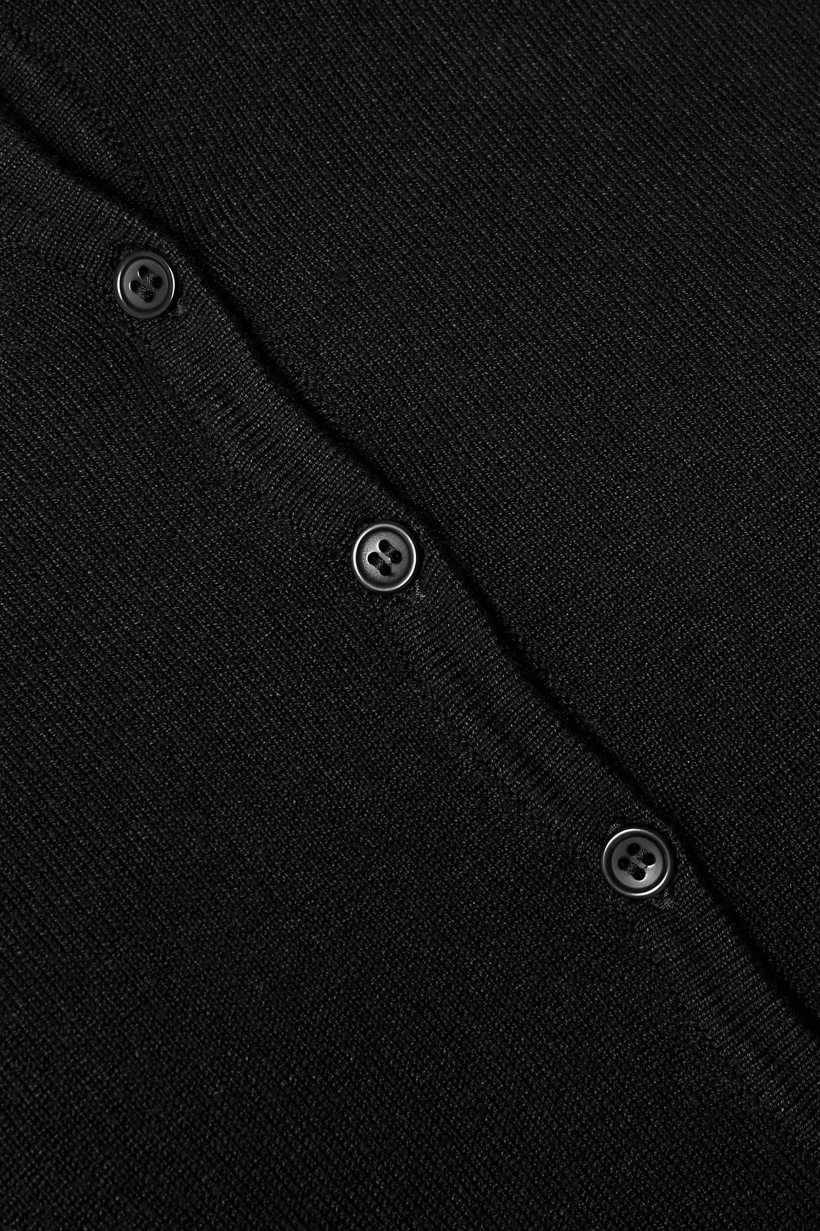 Super soft and simple knit cardigan in a regular fit with a round neck and long sleeves. It features a visible button closure and ribbing at the neck, on the sleeves and at the bottom. An essential addition to every wardrobe.