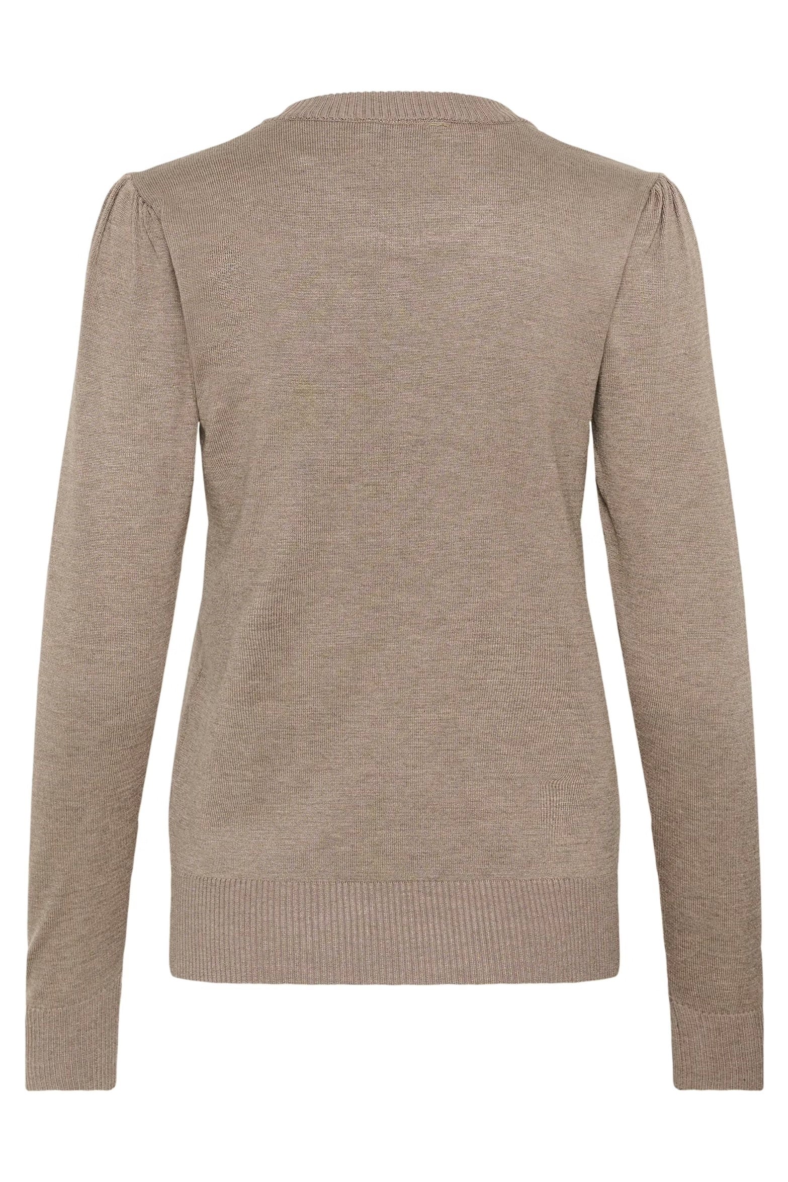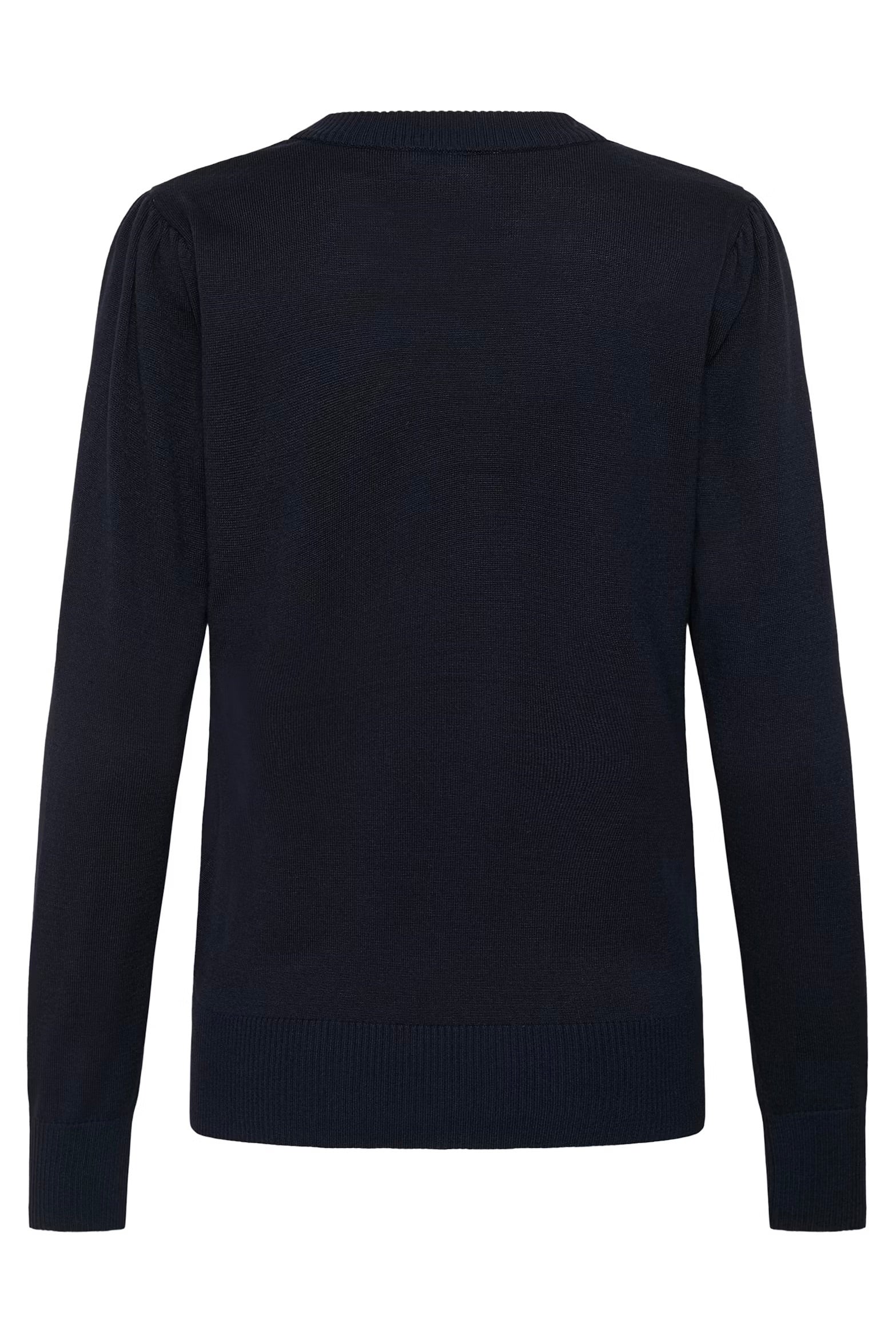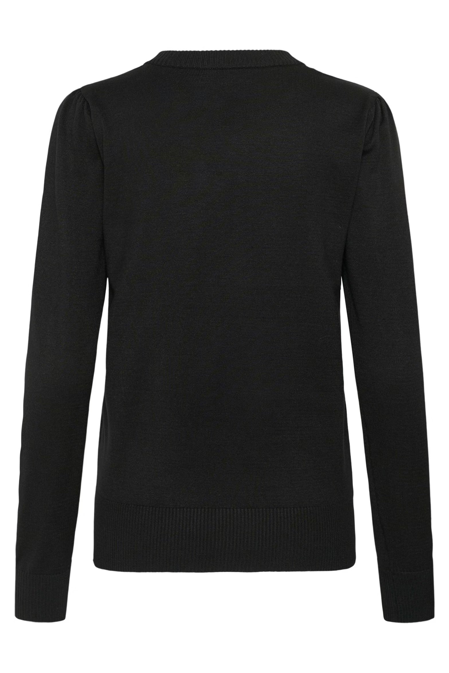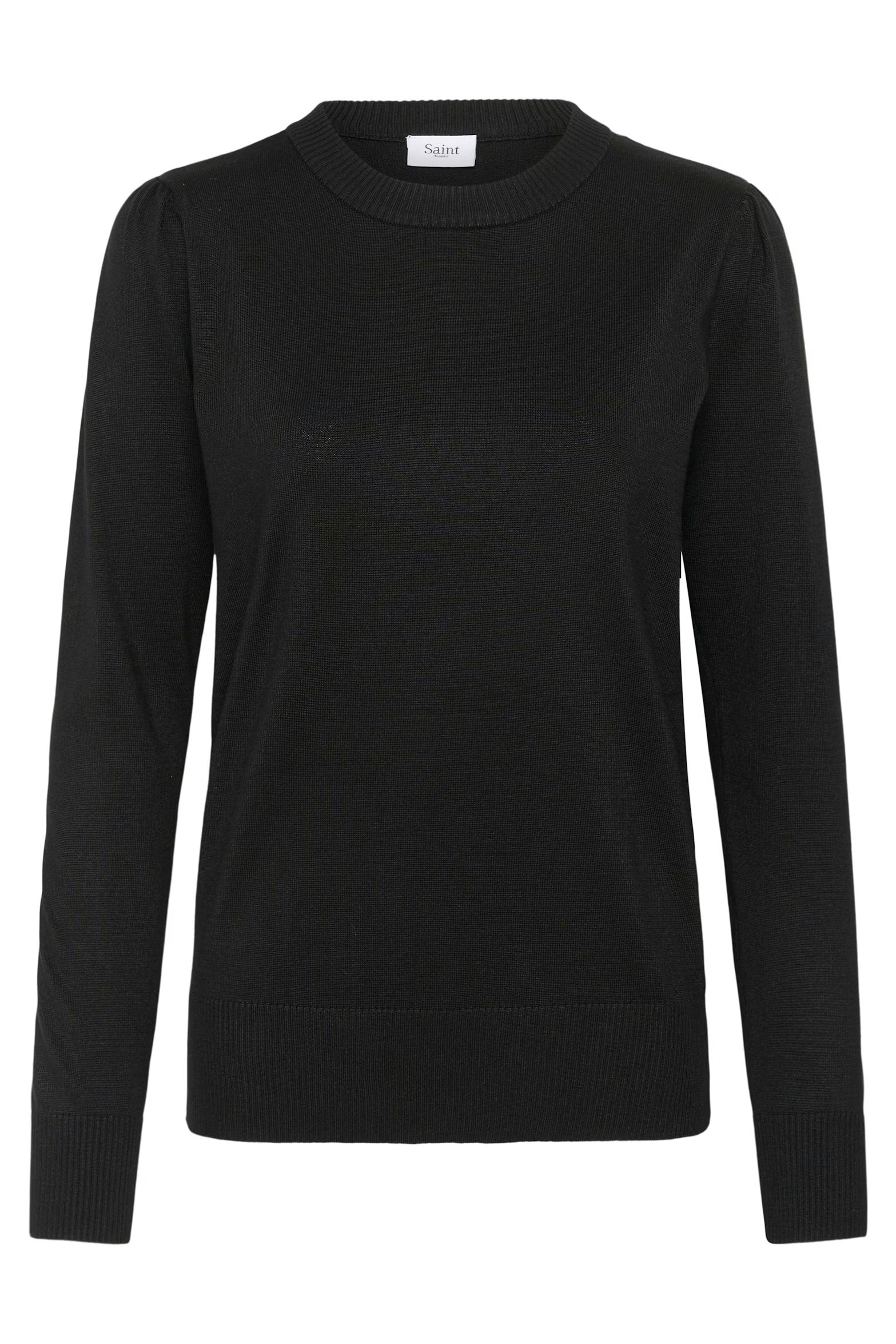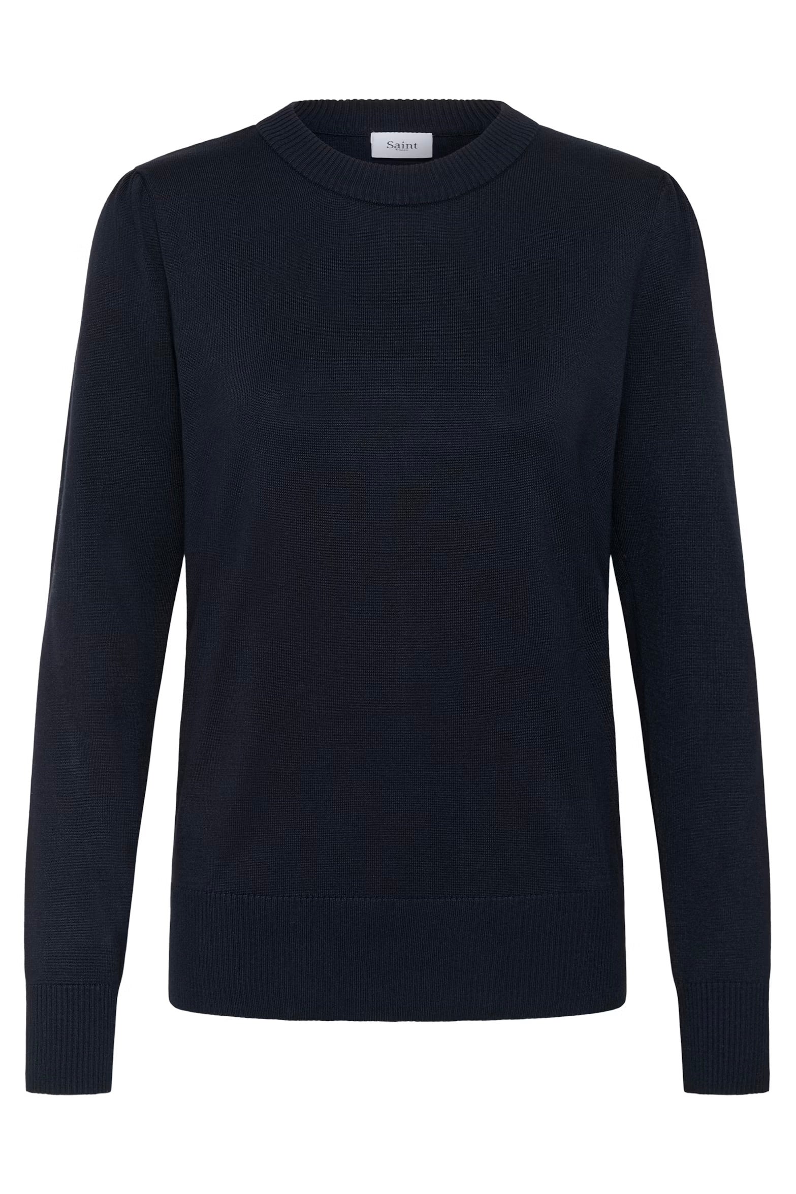 Soft long sleeved sweater with a round neck and slightly puffed shoulder. It features ribbing at the neck, on the sleeves and at the bottom. Simple, classic and comfortable.